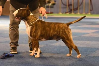 | Plemeno: | bulteriér | Barva srsti: | žíhaná, bílé znaky, krátká |