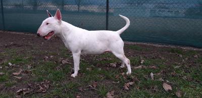 | Plemeno: | bulteriér | Barva srsti: | bílá se znakem/znaky, krátká |
