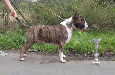 | Plemeno: | bulteriér | Barva srsti: | žíhaná, bílé znaky, krátká |