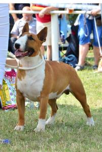 | Plemeno: | bulteriér | Barva srsti: | červená, bílé znaky, krátká |