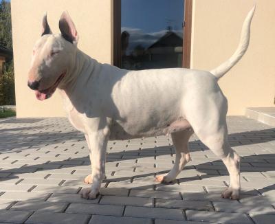 | Plemeno: | bulteriér | Barva srsti: | bílá se znakem/znaky, krátká |