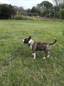 | Plemeno: | bulteriér | Barva srsti: | žíhaná, bílé znaky, krátká |