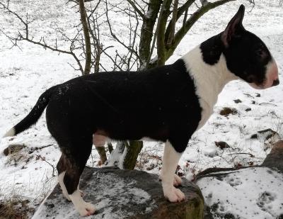 | Plemeno: | miniaturní bulteriér | Barva srsti: | černá s žíháním, bílé znaky, krátká |