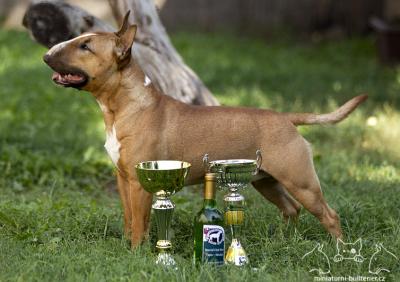 | Plemeno: | miniaturní bulteriér | Barva srsti: | červená, bílé znaky, krátká |