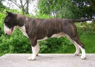 | Plemeno: | miniaturní bulteriér | Barva srsti: | žíhaná, bílé znaky, krátká |