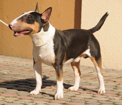 | Plemeno: | miniaturní bulteriér | Barva srsti: | trikolor, bílé znaky, krátká |