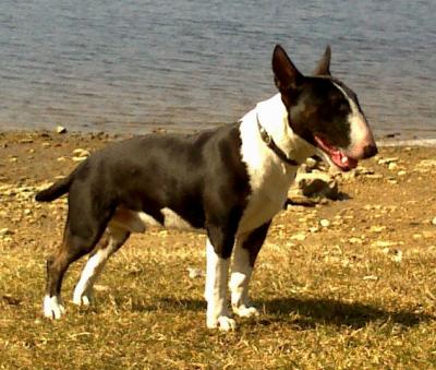 | Plemeno: | miniaturní bulteriér | Barva srsti: | černá s žíháním, bílé znaky, krátká |