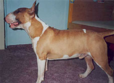 | Plemeno: | bulteriér | Barva srsti: | červená, bílé znaky, krátká |