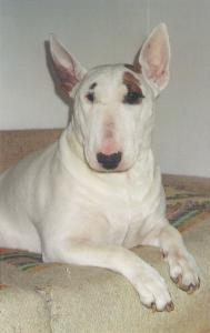 | Plemeno: | bulteriér | Barva srsti: | bílá se znakem/znaky, krátká |