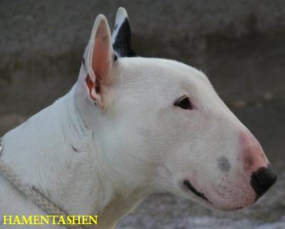 | Plemeno: | bulteriér | Barva srsti: | bílá se znakem/znaky, krátká |