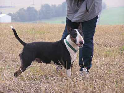 | Plemeno: | bulteriér | Barva srsti: | černá s žíháním, bílé znaky, krátká |