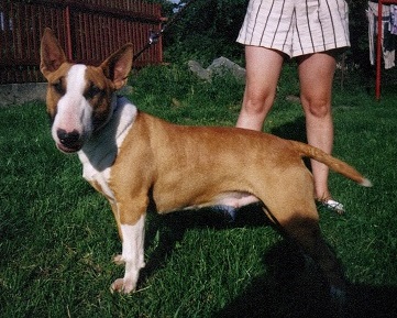 | Plemeno: | bulteriér | Barva srsti: | červená, bílé znaky, krátká |