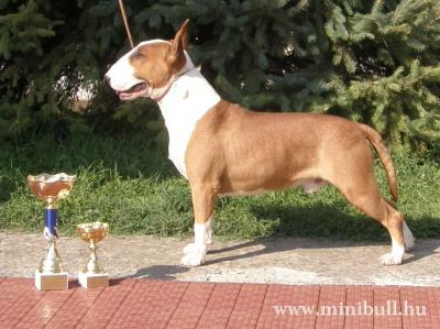 | Výstavní ocenění: | HUNGARIAN JUNIOR CHAMPION ÖSTERREICHISCHER JUNIOR CHAMPION 2008 Budapest Euro Dog Show 3. place (young class) 2008 Stockholm World Dog Show 4 place (young class) HUNGARIAN BULLTERRIER CLUB WINNER 2009 TOP YOUNG MALE - HUNGARIAN BULLTERRIER TERRIER MEOE DERBY WINNER 2008 4*HPJ - 5*CAC - 4*BOB - Res BOG |