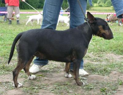 | Plemeno: | bulteriér | Barva srsti: | černá s žíháním, bílé znaky, krátká |