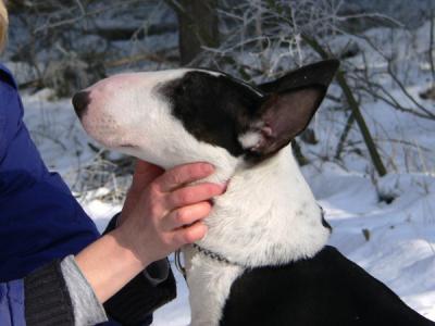 | Plemeno: | bulteriér | Barva srsti: | černá s žíháním, bílé znaky, krátká |
