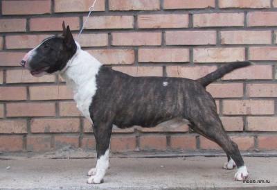 | Plemeno: | miniaturní bulteriér | Barva srsti: | žíhaná, bílé znaky, krátká |