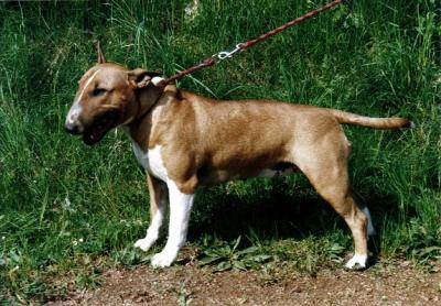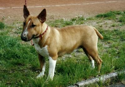 | Plemeno: | bulteriér | Barva srsti: | červená, bílé znaky, krátká |