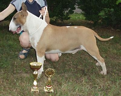 | Plemeno: | bulteriér | Barva srsti: | červená, bílé znaky, krátká |