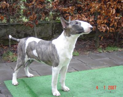 | Plemeno: | bulteriér | Barva srsti: | žíhaná, bílé znaky, krátká |