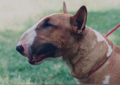 | Plemeno: | bulteriér | Barva srsti: | červená, bílé znaky, krátká |