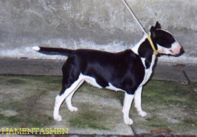 | AL BORAK Hamentashen | fena | bulteriér | černá s žíháním, bílé znaky |