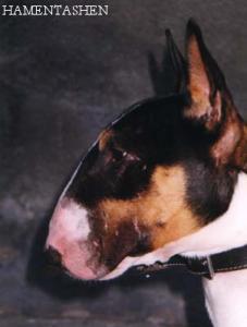 | CAMPARI Hamentashen | fena | bulteriér | černá s žíháním, bílé znaky |