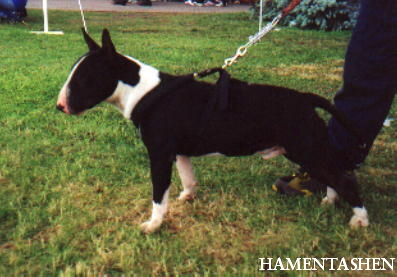 | ESKIMINZIN Hamentashen | pes | bulteriér | černá s žíháním, bílé znaky |
