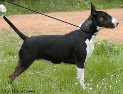 | Plemeno: | bulteriér | Barva srsti: | černá s žíháním, bílé znaky, krátká |