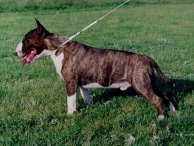 | Plemeno: | bulteriér | Barva srsti: | žíhaná, bílé znaky, krátká |