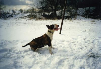 | Plemeno: | bulteriér | Barva srsti: | žíhaná, bílé znaky, krátká |