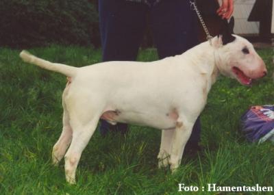 | Plemeno: | bulteriér | Barva srsti: | bílá se znakem/znaky, krátká |