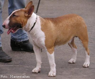 | Plemeno: | bulteriér | Barva srsti: | červená, bílé znaky, krátká |