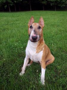 | Plemeno: | bulteriér | Barva srsti: | červená, bílé znaky, krátká |