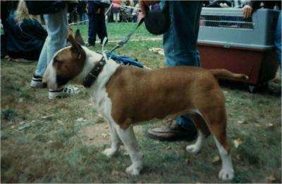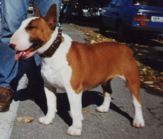 | Plemeno: | bulteriér | Barva srsti: | červená, bílé znaky, krátká |