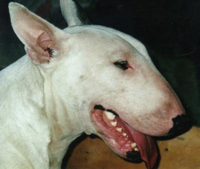 | Plemeno: | bulteriér | Barva srsti: | bílá se znakem/znaky, krátká |