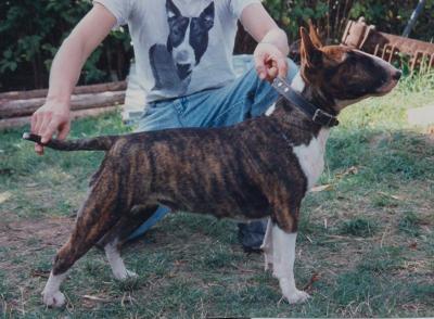 | Plemeno: | bulteriér | Barva srsti: | žíhaná, bílé znaky, krátká |