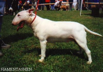 | Plemeno: | bulteriér | Barva srsti: | bílá se znakem/znaky, krátká |