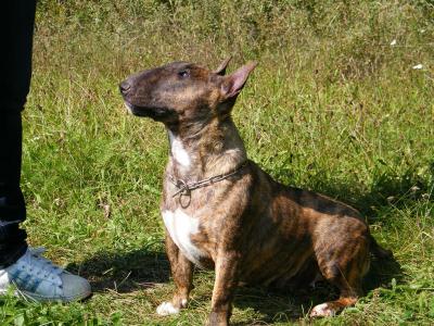 | Plemeno: | miniaturní bulteriér | Barva srsti: | žíhaná, bílé znaky, krátká |