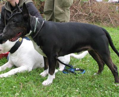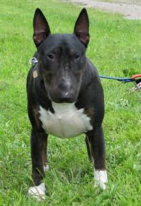 | Plemeno: | bulteriér | Barva srsti: | černá s žíháním, bílé znaky, krátká |