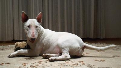 | Plemeno: | bulteriér | Barva srsti: | bílá se znakem/znaky, krátká |