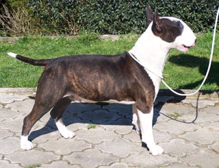 | Plemeno: | bulteriér | Barva srsti: | žíhaná, bílé znaky, krátká |