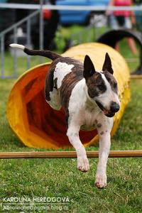 | Plemeno: | bulteriér | Barva srsti: | žíhaná, bílé znaky, krátká |