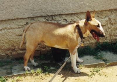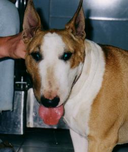 | Plemeno: | bulteriér | Barva srsti: | červená, bílé znaky, krátká |