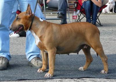 | Plemeno: | bulteriér | Barva srsti: | červená, bílé znaky, krátká |