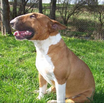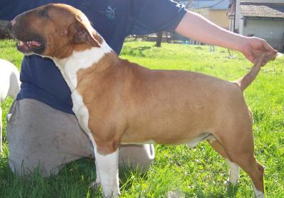 | Plemeno: | bulteriér | Barva srsti: | červená, bílé znaky, krátká |