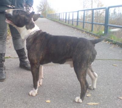 | Plemeno: | bulteriér | Barva srsti: | žíhaná, bílé znaky, krátká |
