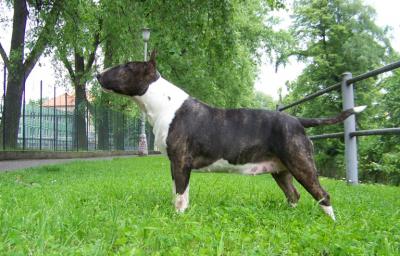 | Plemeno: | bulteriér | Barva srsti: | žíhaná, bílé znaky, krátká |
