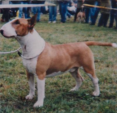 | Plemeno: | bulteriér | Barva srsti: | červená, bílé znaky, krátká |