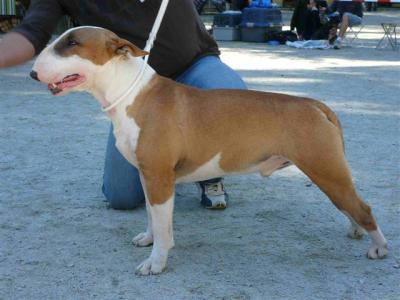| Plemeno: | bulteriér | Barva srsti: | červená, bílé znaky, krátká |