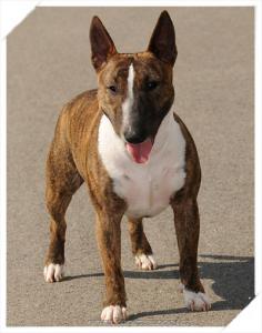 | Plemeno: | miniaturní bulteriér | Barva srsti: | žíhaná, bílé znaky, krátká |